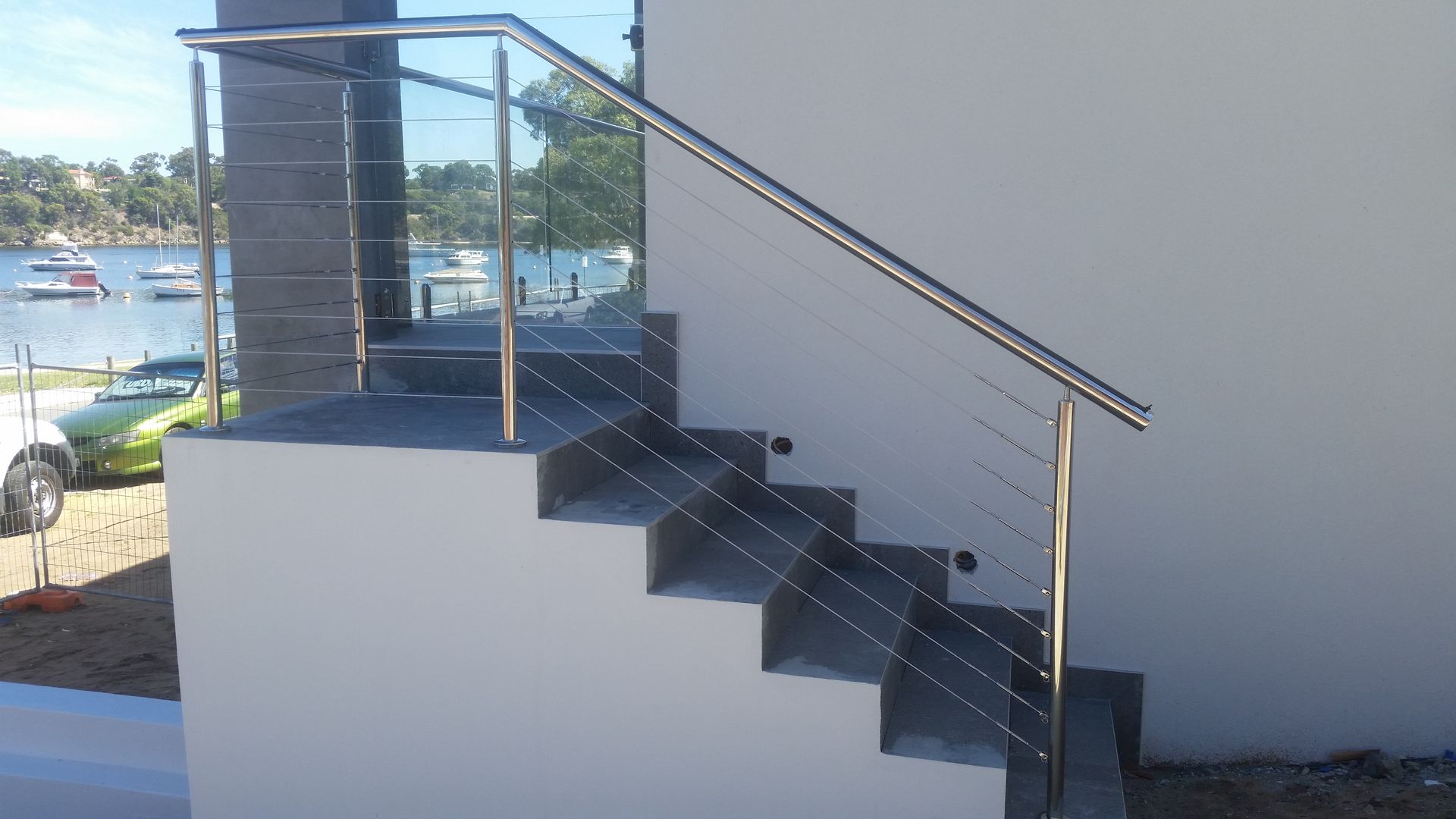 Stainless steel wire rope balustrades offer a more industrial look. Marine grade stainless steel wire and fittings guarantee years of trouble free use.